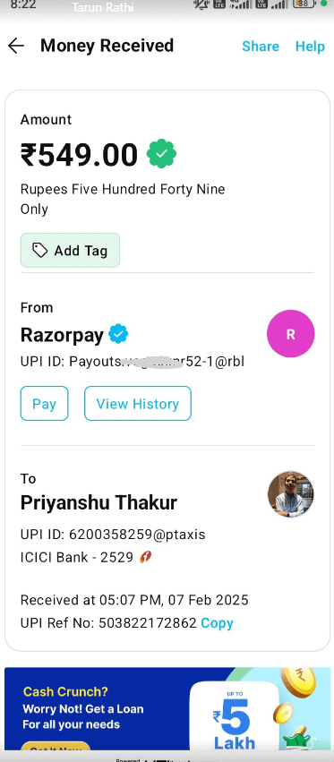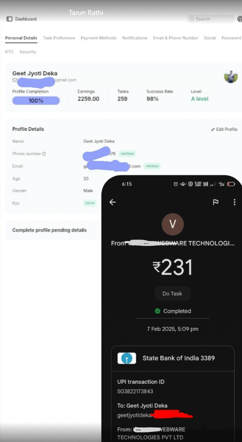 मैंने साइन अप किया और कुछ आसान काम मिले – पोस्ट लाइक करना, शेयर करना, वीडियो पर कमेंट करना, और यूट्यूब चैनल सब्सक्राइब करना। मैंने हफ़्तेभर में काम किया और ₹2,300 कमा लिए! जब पैसे सीधे मेरे बैंक अकाउंट में आए तो मेरी ख़ुशी का ठिकाना नहीं था।